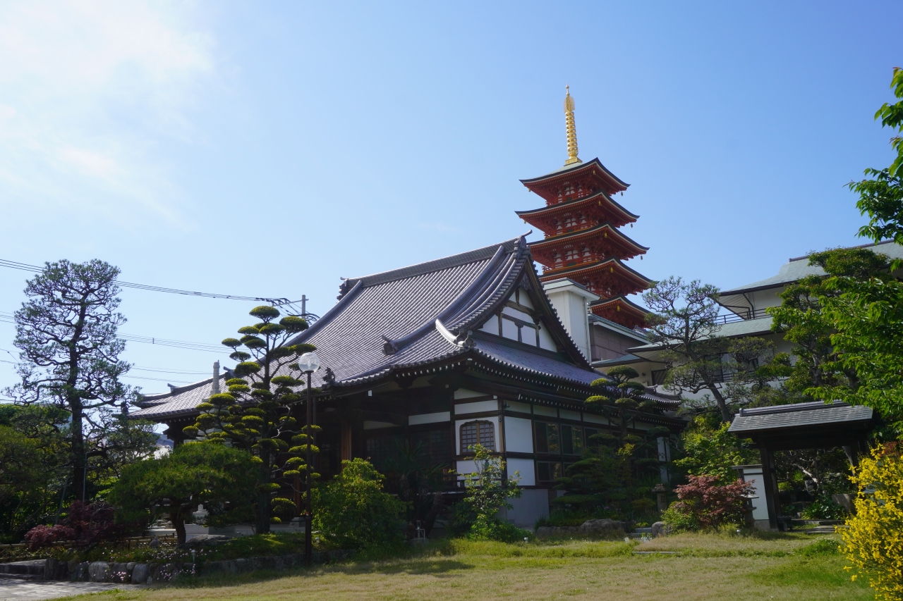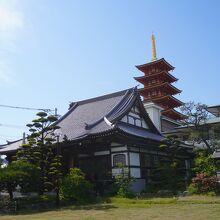 この寺は、何といってもシンボルの木造五重塔が圧巻。本堂の裏手にあって、総高26.5mの高さを誇ります。