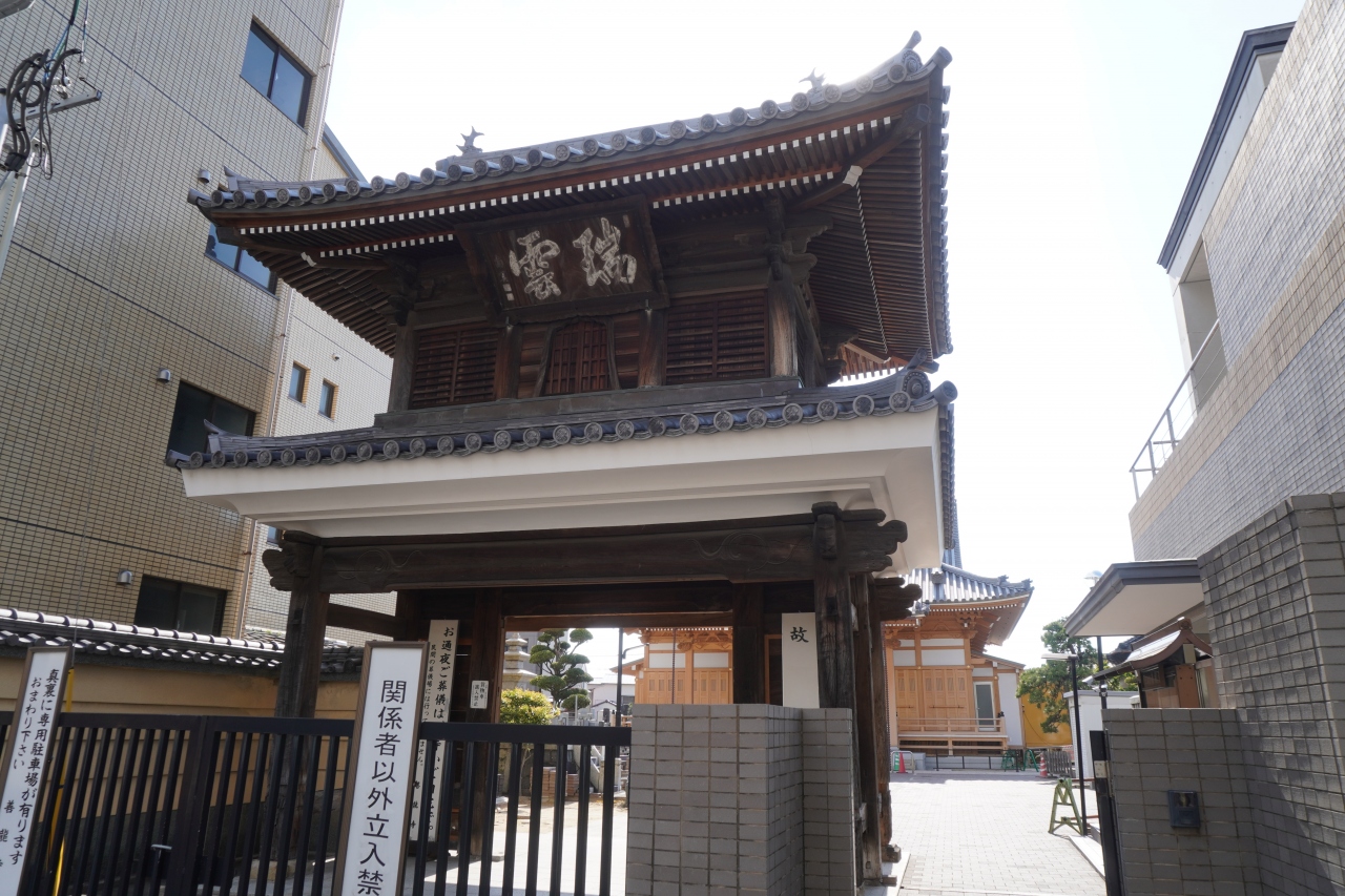 善龍寺は、唐人町商店街アーケード西側入り口の近くに建つ浄土真宗東本願寺派の寺。ここは、黒田如水の夫人、照福院が荼毘に付された地だということ。二代藩主の黒田忠之の命によりここに移ってきたそうです。二階建ての山門には「関係者以外立ち入り禁止」の看板があってドキッとします。