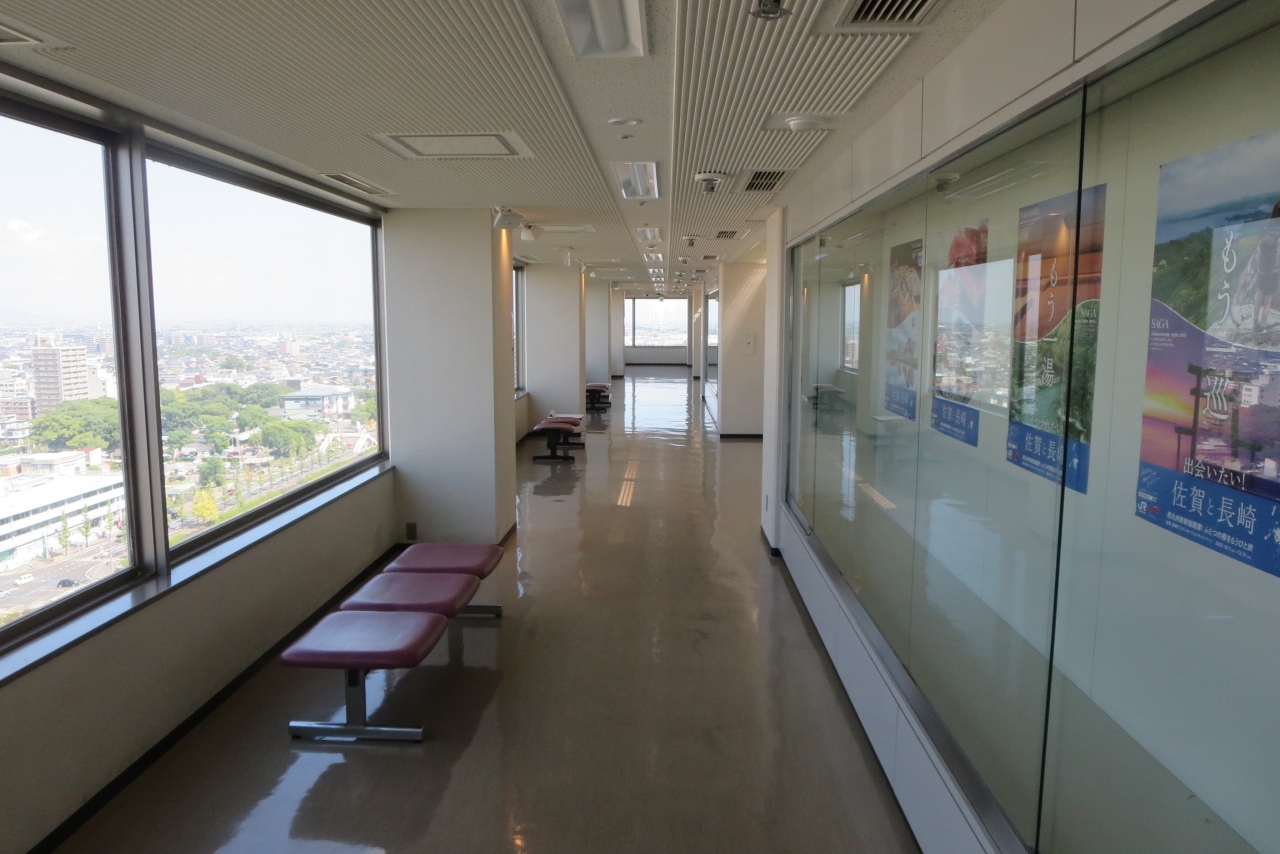 佐賀県庁は高さ約60mあります。佐賀市内で一番高いビルでないかと思います。その最上階に一般開放されている室内展望台があります。展望台はビルの外周に沿ってあるので、四方がすべて展望できます。佐賀市街地はもちろん、北は天山や彦岳、南は雲仙普賢岳、西は多良岳や八幡岳などです。夜間も開放されているため夜景鑑賞ができます、夜景スポットとしてはおすすめできる場所だと思います。また食事をしながら景色を見ることができるように展望台にはレストランもあります。