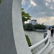 イサムノグチ氏によるデザインで、親柱などがシンプルながらユニークです。戦後すぐ、1952年に架けられた橋なので、歴史的な意味合いもあるのではと思います。この橋の東側に架かる平和大橋と対になっているので、あわせての見学がオススメです。