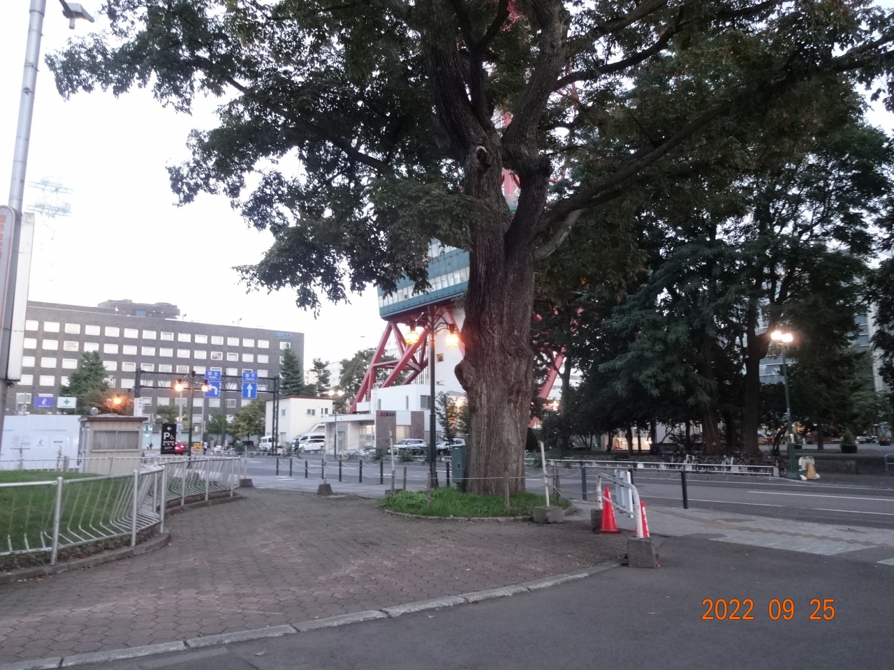 写真を撮りながら、たぶん、この木がそうだろうと思ったのですが、周辺には、例えば、「旧市民会館前のハルニレ」とか「札幌景観資産第27号」といった表示は見当たりませんでした。