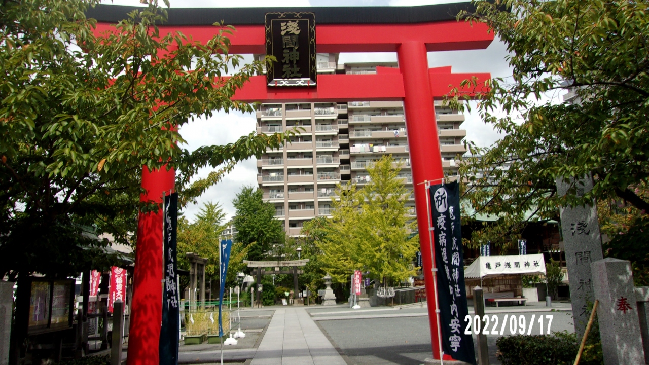 この亀戸浅間神社は旧中川沿いにある旧中川水辺公園に隣接しています。地下鉄都営新宿線東大島駅から北に10分程度の場所にあります。この神社は16世紀前半です。当時さかんであった富士信仰でそれでここには笄塚に富士塚を造りました。それが今も残っています。また境内には富士せんげん道道標の石柱もあります。当時は多くの人々が参拝したのでしょう。