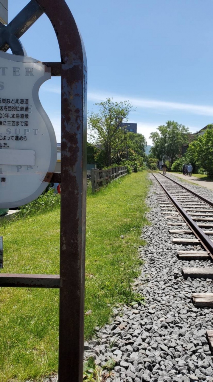 廃線した手宮線の跡地ということで駅を一つ、線路の一部を残したエリアです。線路の上や脇を歩けるようになっています。廃線していてなんの鉄道もとおっていないので、誰でも自由に線路に出入りして散策できます。