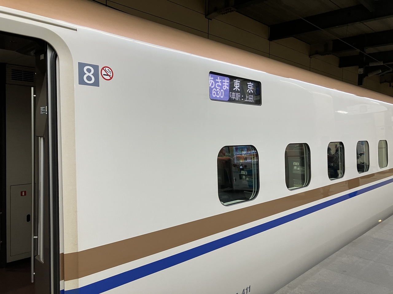 日帰りで長野を訪れた帰りに、北陸新幹線「あさま」を利用しました。平日の夜の便で、自由席を選びましたが、始発だったため、ゆったり座れました。座席下に充電コンセントがあるのも助かりました。車内販売がなかったので、駅の売店で購入してから乗車するのがよいみたいです。