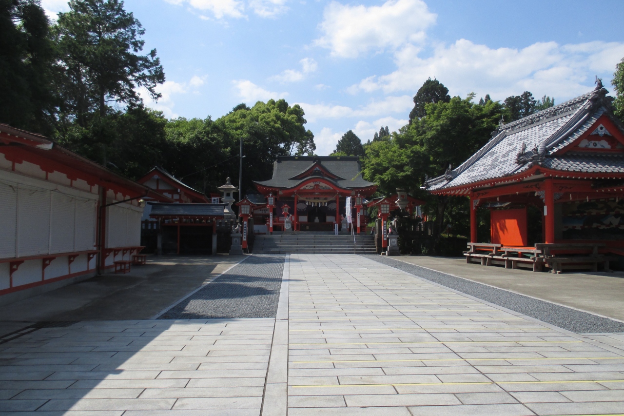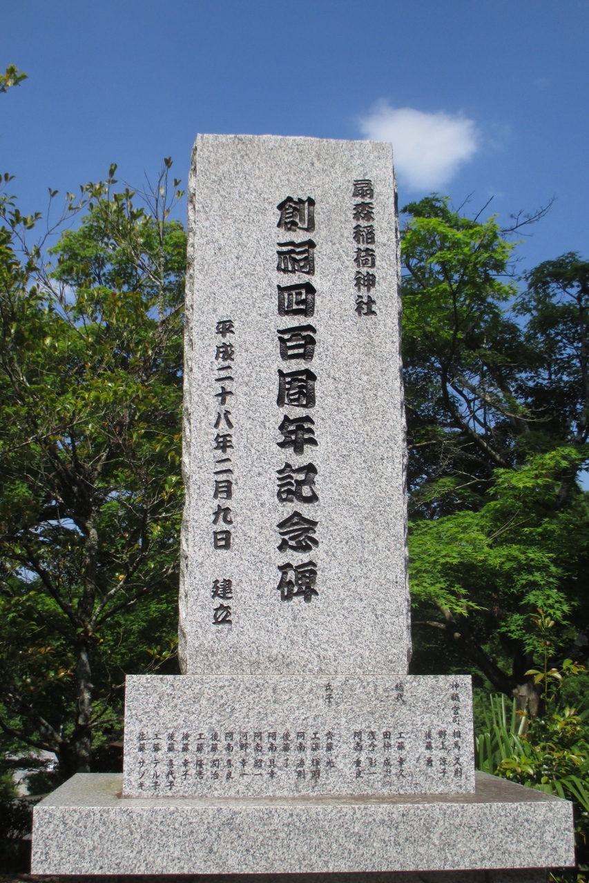 扇森稲荷神社は、国道57号線から参道が始まっていました。場所は拝田原という地区です。ここには古墳があることから古くから祭祀が行われていて、それが神社としての始まりではないかとみられていますが、稲荷神社としての創祀は1616年(元和2年)とされ、後に、岡藩主から「扇の森」の社号を頂いて、扇森稲荷神社となったとのことです。(創祠400年の記念碑が建っていました)地元では長い社名ではなく、「こうとうさん」と親しく呼ばれているそうです。諸説があるそうですが、もっともよく知られているのは、岡藩の藩士がここに白狐の頭を埋めたことから狐頭原(こうとうばる)と呼ばれるようになり、今では、狐頭様(こうとうさま)と通称されているのだというものです。