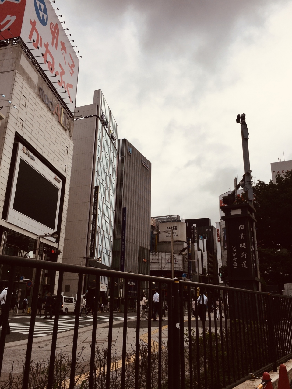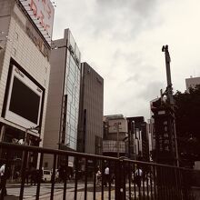 新宿駅東口を出た左側にありました。旧青梅街道と書いてある標識があり、江戸情緒ぽい感じでした。道はJR線の線路を潜り細い道でしたが駅前の為人通りが多く、JR線のトンネルの壁沿いには絵がいくつか掲げられていました。