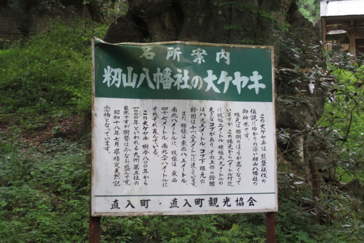 籾山八幡社は訪れた経路は違いましたが、1番近い町である長湯温泉からは車で15分くらいの場所にあるとのことです。創建は景行天皇が土蜘蛛討伐を行うに当たって、戦勝を祈願した三柱の神(志我神、直入物部神、直入中臣神)の中の直入物部神を祀った直入物部神社がその始まりなのだそうです。土蜘蛛討伐は紀元82年(景行天皇12年)のころだそうですから、神代の時代だということでしょうね。
