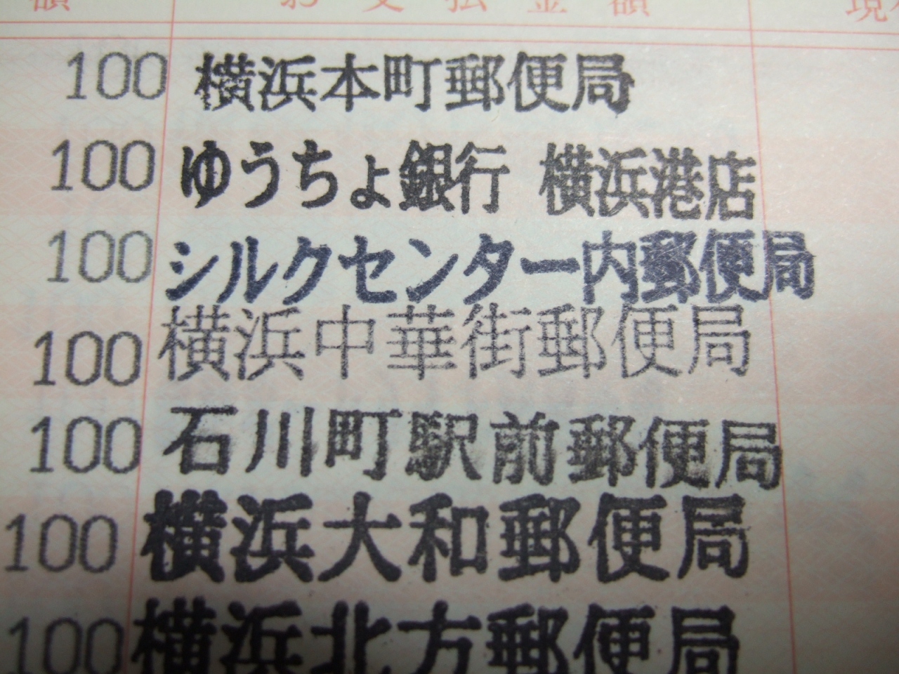 朱雀門近くのビル1階には横浜中華街郵便局が入っていますが、窓口の女性がお客さんと中国語で流暢に会話しているのには驚きました。ゴム印は「宝」はなく、普通の文字だけのものでした。