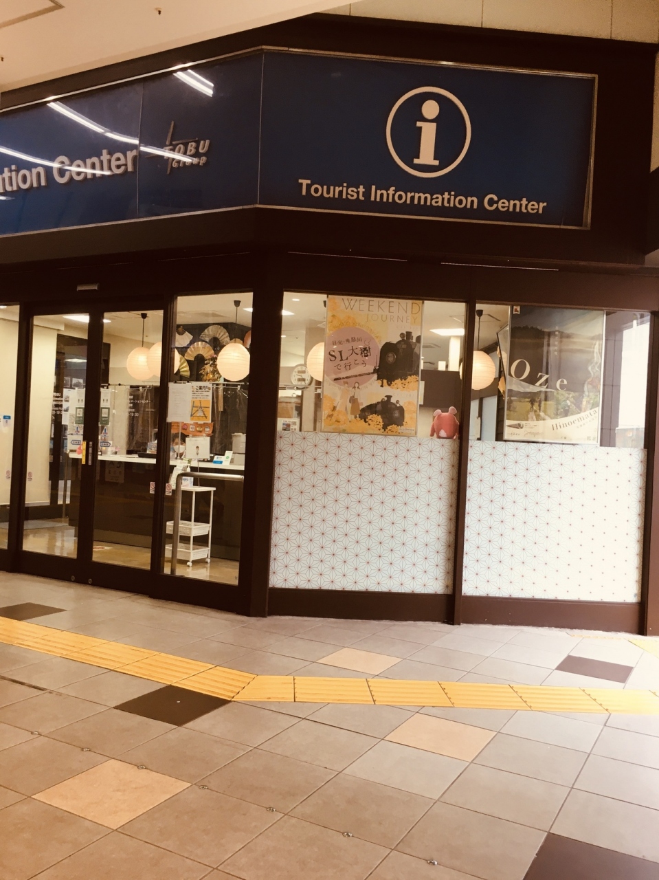 東武浅草駅から改札口出て、エスカレーターを下るとほぼ正面にあるガラス張りの建物です。旅行会社のカウンターのような雰囲気の店内で、案内人も何人かいてパンフレット、チラシ類が置いてありました。地図を入手しました。