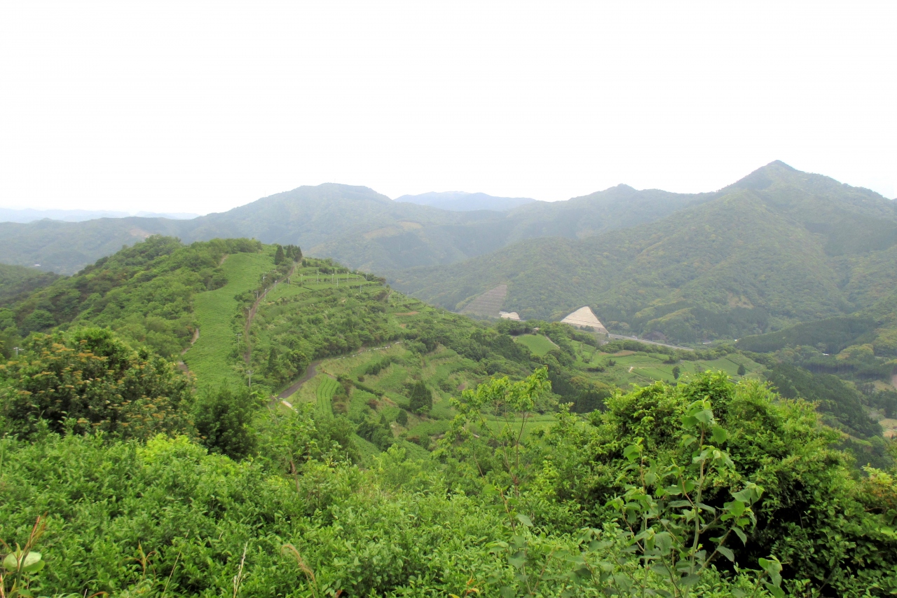 地下(じげ)の茶山展望所は海岸沿いを走る県道122号線から、山側に逸れて登っていったところにありました。世の中にはいろいろな選定がありますが、2008年(平成20年)に朝日新聞社が行なった「日本の里100選」に北浦が選ばれたそうです。北浦が選ばれたのは、海の里であり、また、茶の里でもあることでした。地下の茶山がその茶の里で、茶山展望所から眺めると、山肌広範に茶畑が拡がっていました。ここには早生品種の「さえみどり」「さきみどり」などが栽培されているそうです。訪れた5月では2番茶、3番茶の摘み取り時期なのかと思いました。