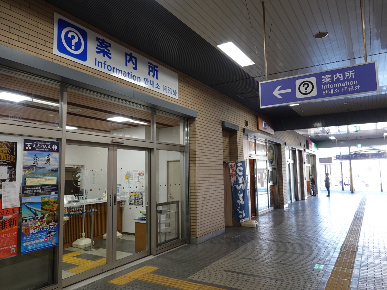 下関駅観光案内所は、JR下関駅1階の通路沿いにあります。土産店やスーパーが並び、駅前の大通り(国道191号線)に近い場所です。朝9時から18時まで営業しており、スタッフも常駐しているので、観光客にとっては強い味方となる施設です。