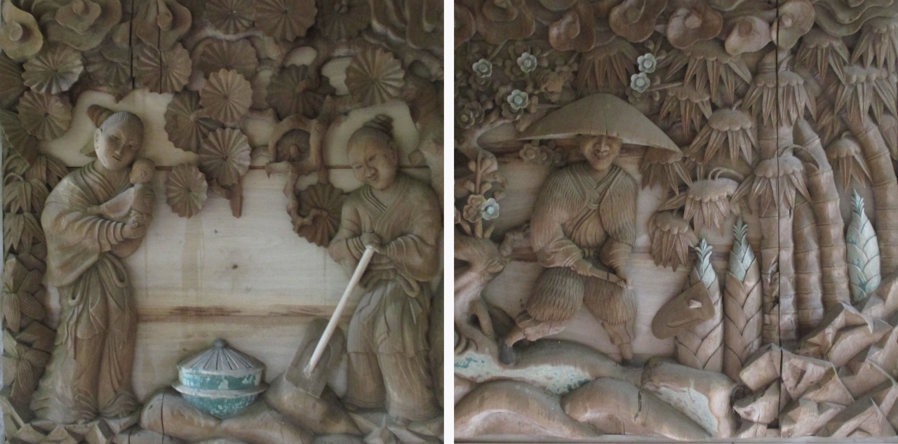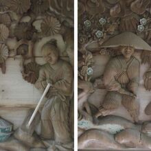 今市石畳の端のところに丸山神社がありました。今市宿は岡藩の領地だったので、竹田の総鎮守である城原神社の分神が祀られたとのことです。(八幡社ですので主祭神は八幡神です)大きな楼門がありました。今市の豪商・松田庄右衛門尉長次(並の豪商ではないすごい名前ですねぇ)の寄進により、1720年(享保5年)に建立されたものだそうです。12支の動物を始めとしてたくさんの彫刻が嵌められていました。彫刻には力を入れたのだと思います。楼門をくぐって、境内に入ると、楼門に比べると小さめな拝殿、本殿がありました。楼門の寄進者と同じ長次によって、1727年(享保12年)に再建されたものだそうです。