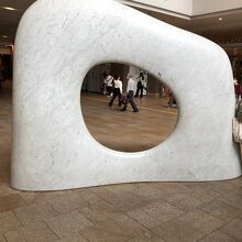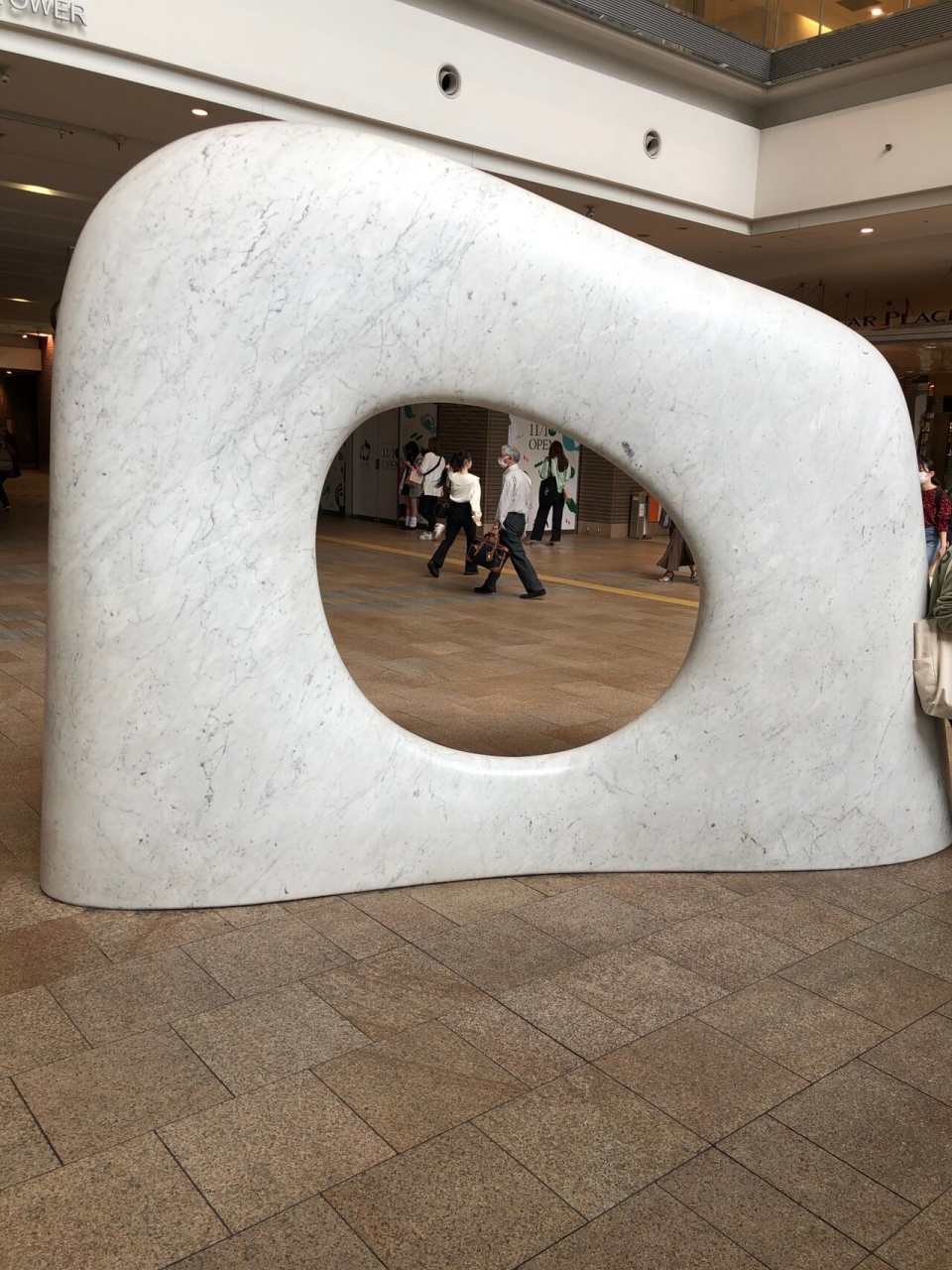 穴が丸くあいた作品です。表面がなめらかに仕上げられており、石なのに柔らかい印象の作品だなと思いました。