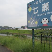意外に思ったのは、七瀬川の源流は高い山ではなく、大分市と豊後大野市の境界に横たわる高原地帯なのですね。広域から水が集まってくることになるからか、古くから暴れ川だった結果が、下流部の絵に描いた様な蛇行ぶりですね。その治水工事の1つが分りやすい七瀬川自然公園付近で、七瀬川の土手に上がってみました。ここでは川底まで治水工事が行なわれていました。
