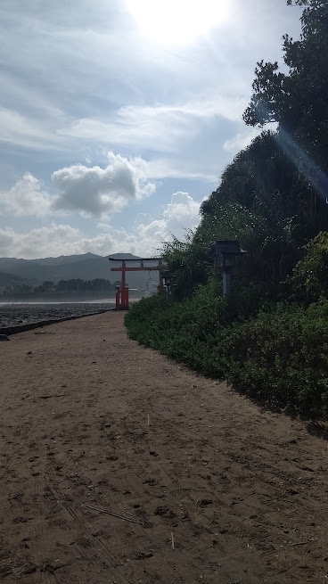 亜熱帯植物の群生地なので、神社はトロピカルな植物に囲まれています。