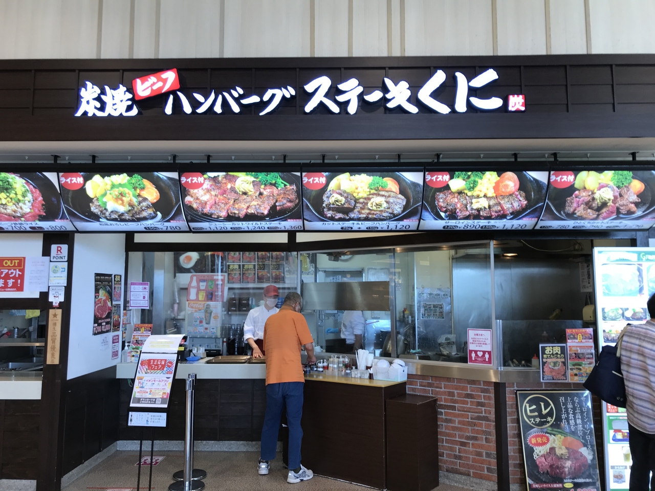 ステーキくには、イオンモール草津の3階、フードコートの中にあります。今回頂いたのは、ひと口カットステーキ。アツアツの鉄板で提供され、ガーリックチップの香りがよく効いていました。お肉はちょっと硬めでしたが、フードコートで頂くステーキとしては合格レベルだと思います。