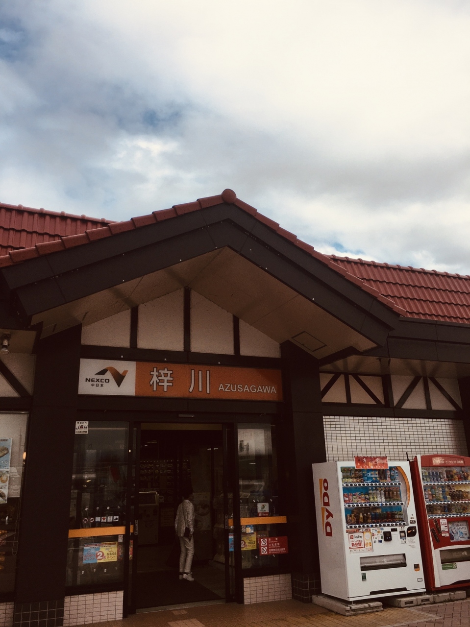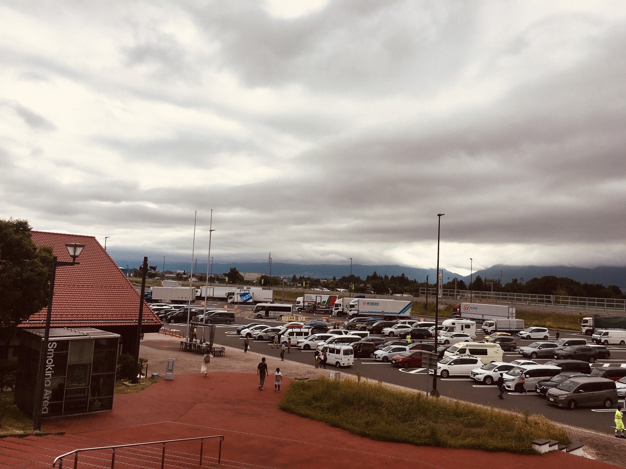 建物の左側には階段があり、ミニ公園のような感じで芝生が広がっていてサービスエリアのほぼ全景を見渡すことが出来ました。建物内の右側にコーヒーショップやコンビニありました。食事処には蕎麦屋等がありましたが狭いフードコートでした。