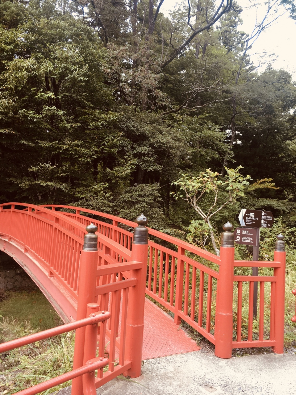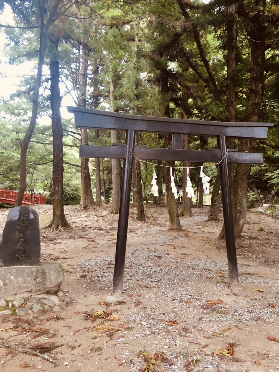 諏訪大社下社春宮と万治の石仏に挟まれたような場所で、浮いているようには見えませんでしたが、両サイドには小川が流れ、橋が架かっていました。鳥居、石碑、祠があり、間隔を置いて高い細い木がいくつか立っていました。