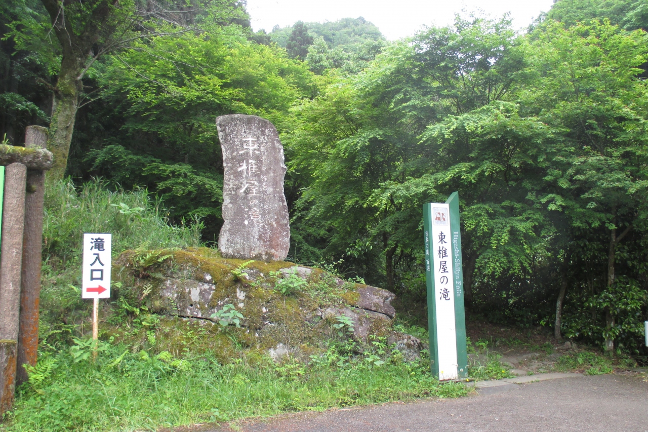 東椎屋の滝は、国道500号線から津房川の支流となる滝川沿いの道を進んだ先に、滝の駐車場がありました。駐車場から約300m、10分と案内されていました。ところどころで滑る道を歩いて辿り着くと、高さ85mから一気に流れ落ちていて、歩いた苦労?が報われる気分になります。西椎屋の滝、福貴野の滝とともに「宇佐の三滝」と呼ばれるのだそうですが、これでその3つを見ることが出来ました。でも、近くで見られるのはこの東椎屋の滝だけですから、間違いなく1番の滝だと思いました。