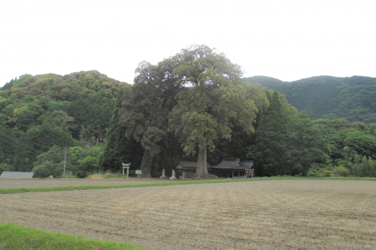 国道500号線からの東椎屋の滝の入口近くの熊野神社にある「東椎屋のイチイガシ」は見応えがありました。滝見物のついでに寄られることをお勧めします。案内板が立っています。