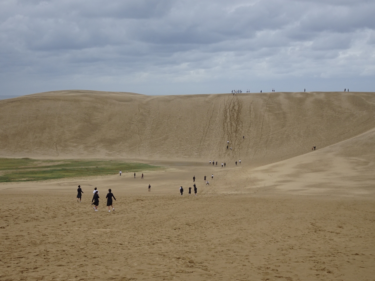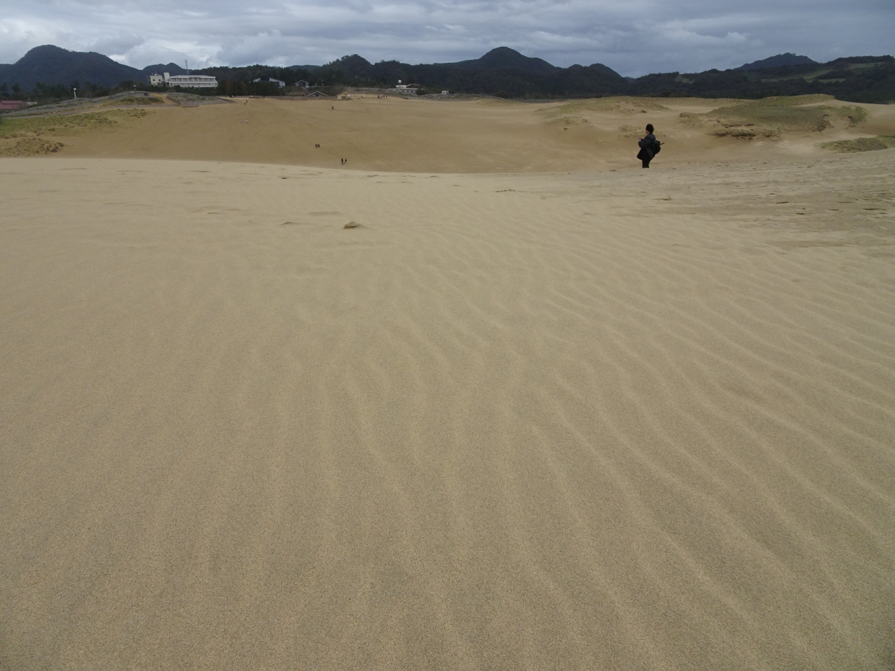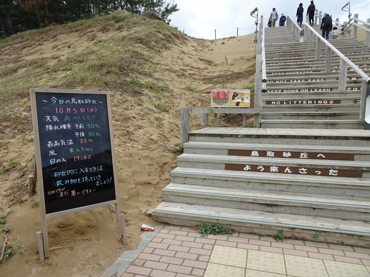 雨上がりの砂丘は、比較的歩きやすかったです。とは言ってもやはり歩くときは、結構急な丘なので歩くと足が砂に取られます。普通の靴で行ったので靴の中に砂が入らないようにシューズカバーを鳥取砂丘会館で1足200円で購入。足首までガードされるので全く砂が入りませんでした。(砂丘センター展望の売店では2足セット200円のもありました)