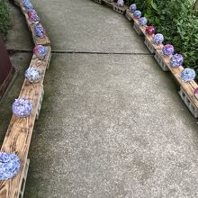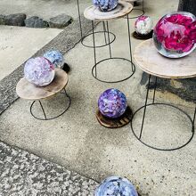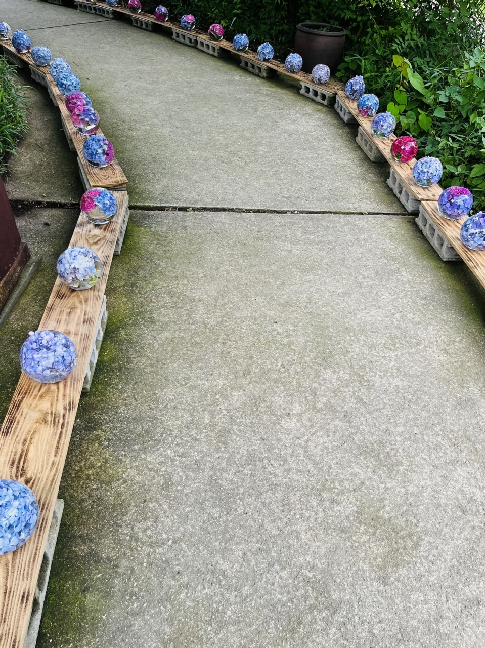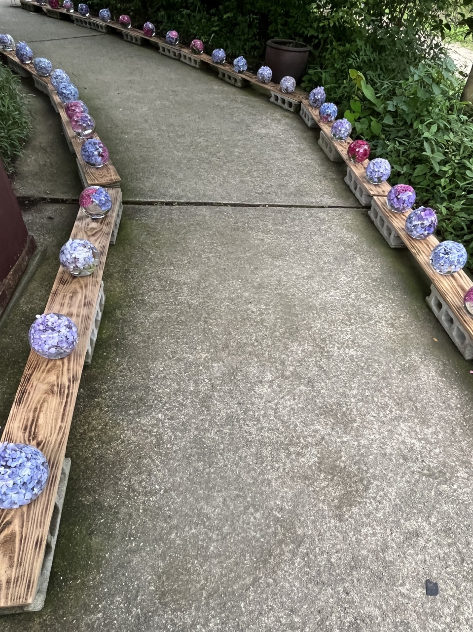 境内 奥に「アジサイボール」が 飾られた道 ができていました。