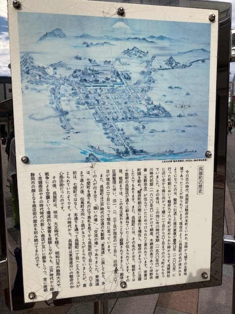 東海道を歩いて旅している途中、この呉服町に差し掛かりました。今川氏の時代から、ここは駿府の中心地だったそうですが、「呉服町」という名が使われるようになったのは、徳川家康が行った町割後だそうです。つまり、ここには呉服を扱う店が軒を連ねていたのです。そういう視点で見てみると、今は近代的な建物が立ち並ぶこの辺りも、老舗のような店名を掲げるところが多くあることに気づかされます。町並み自体が、近世の雰囲気を漂わせている感じです。また、映画の機材も通りに展示されているのも見どころの一つです。