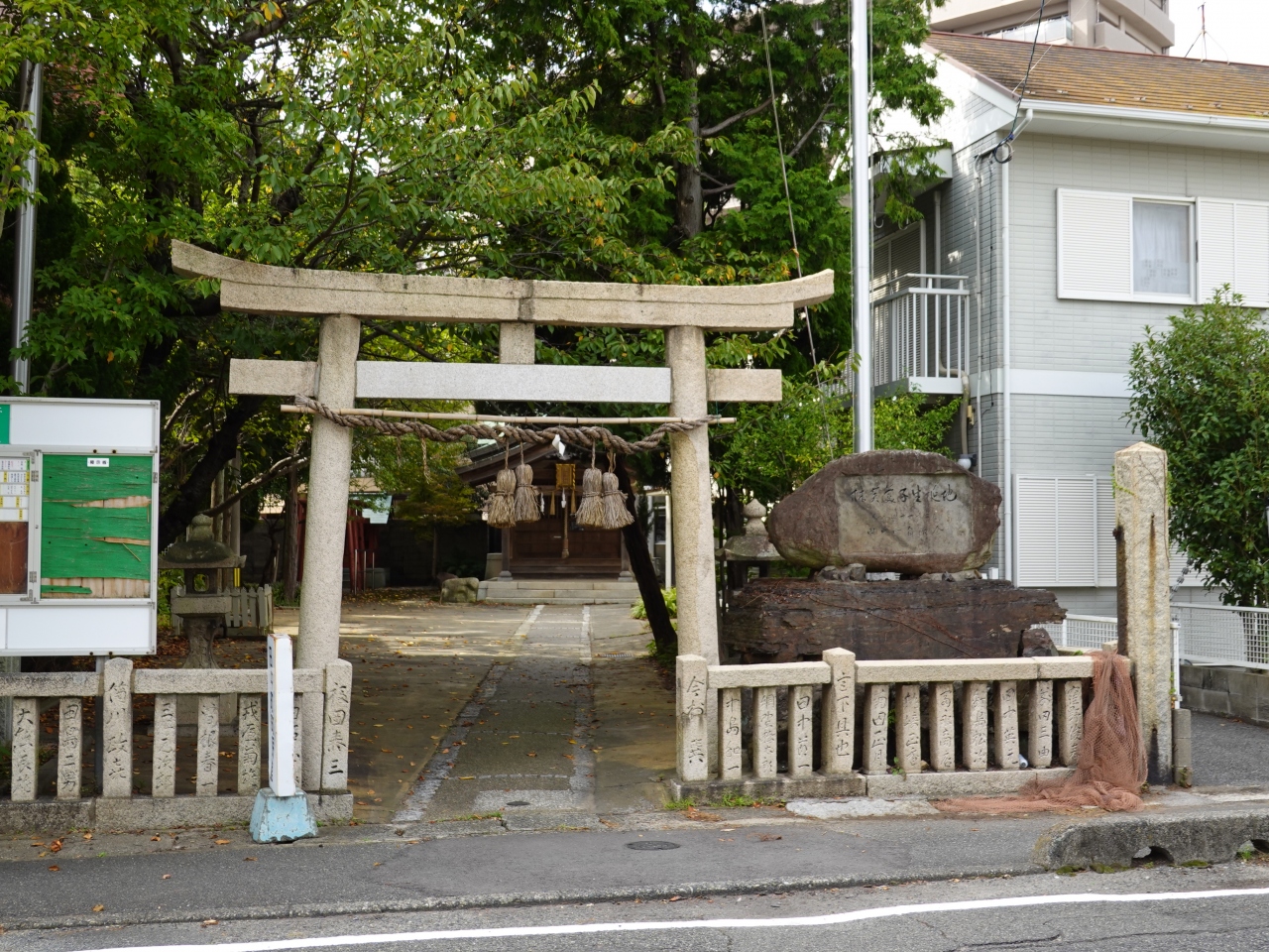 「林芙美子生誕地の碑」は唐戸交差点から県道57号下関港線を北へ向かい500メートルほど、五穀神社の鳥居脇にあります。林芙美子は明治時代に山口県で生まれた小説家で、主に昭和期に活躍しました。やや保存状態が気がかりですが、歴史を感じる石碑でした。