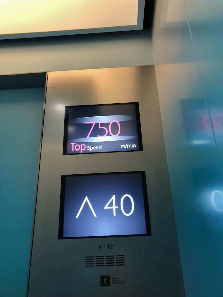 さすが、平日のあさイチでもない11時。入場もエレベーターも私一人。分速750mの上昇を体感です。