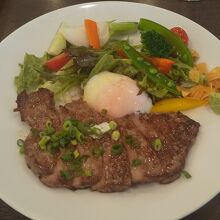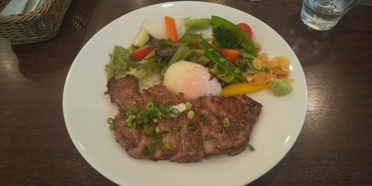 青森駅から徒歩ですぐ、商業施設A-FACTORYの2階にあります。ランチは数種類のガレットがメインですが、サーロインステーキ丼にしました。野菜も添えてあってヘルシーですが、とても美味しく見た目以上に量があり大満足でした。