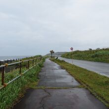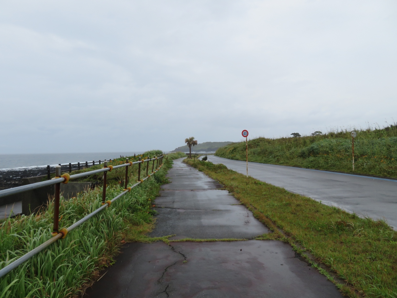 御神火温泉のあたりから野田浜までサイクリングロードが続いています。多少のアップダウンはありますが、海沿いの道路で景色が良いので気持ちよく走れました。でも道はかなり劣化していて舗装が剥がれで凸凹しているところもあるのでもう少し整備してくれるといいのに。