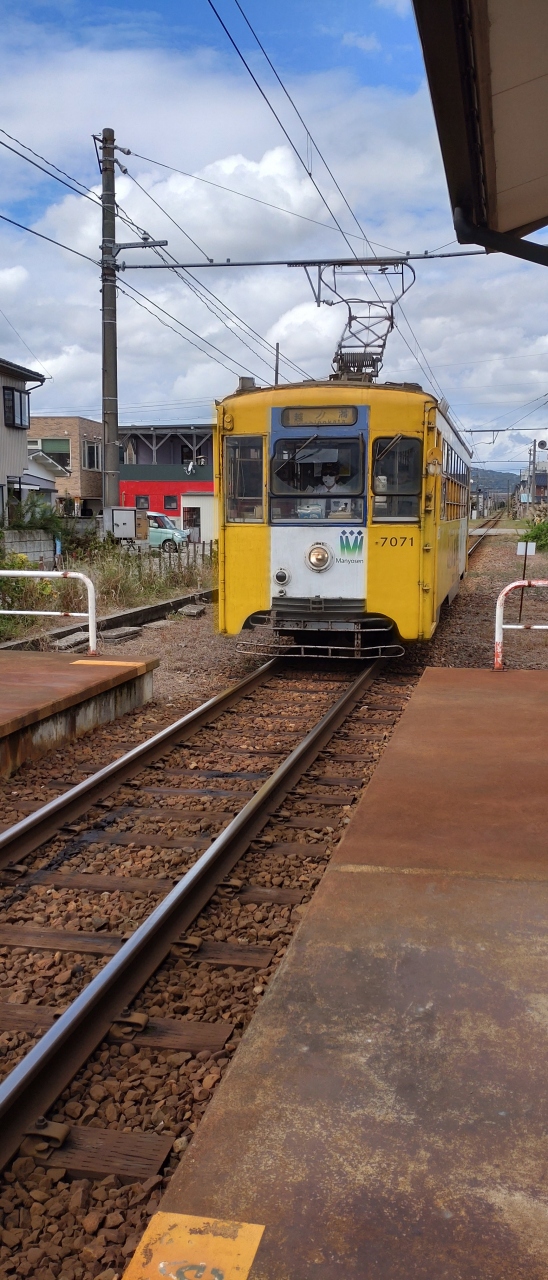 ”いろんな乗り物体験と新湊散策”のツアーで、「西新湊駅」から「越ノ潟駅」に利用しました。「西新湊駅」でトラムを待っていると、反対行きの「ドラえもんトラム」がやってきました。実際に乗車したのは、廃車寸前を思わせるような電車でした。この区間は落語家の立川志の輔さんの観光アナウンスが流れています。ご実家は、この沿線の駅の近くにあるそうです。味わいのある語り口は、古い車両にあってました。
