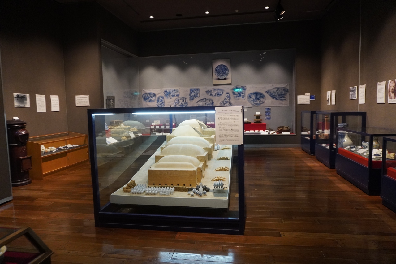 最初の展示室は、中央に登り窯の模型と周囲には有田焼を製造する際に使用した道具類など。ただ、有田焼の歴史を紹介するビデオを拝見すると分業制の工夫とかいろいろなイノベーションがあって発展してきたのだとか。展示物を見ても分からないような情報がけっこうあるので、ビデオはお勧めです。奥には年代を追ったおびただしい陶片の保存展示もあって、さすが有田かなという感じです。