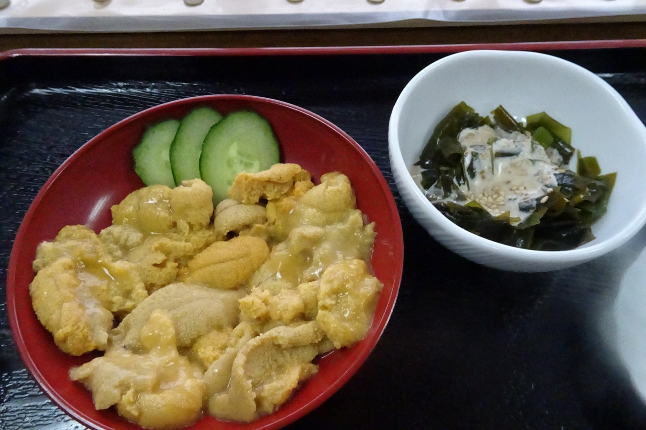 沓形フェリー乗り場近くの食堂。団体客専用に近い?訪問当日は休業?客は私たちだけで、改装中?食事提供し、飲み物の注文、提供したらあとはほったらかし・・しかしウニは美味しかった、臭み全くなく、とろける味わい、御飯にかけるのがもったいない、本当にウニたっぷりでした
