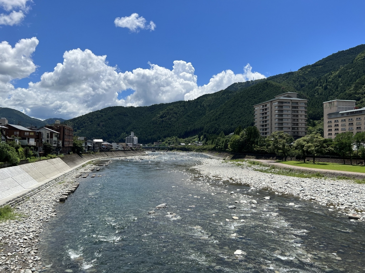 飛騨川は、乗鞍岳の南側から、飛騨、木曽の山間部を流れて木曽川に合流しています。高山本線の久々駅近く(高山の南10キロ)からは美濃太田駅近くで木曽川に合流するまで、高山本線に沿って流れています。高山本線を走る列車の車窓からの飛騨川の渓流は、見ごたえがあります。