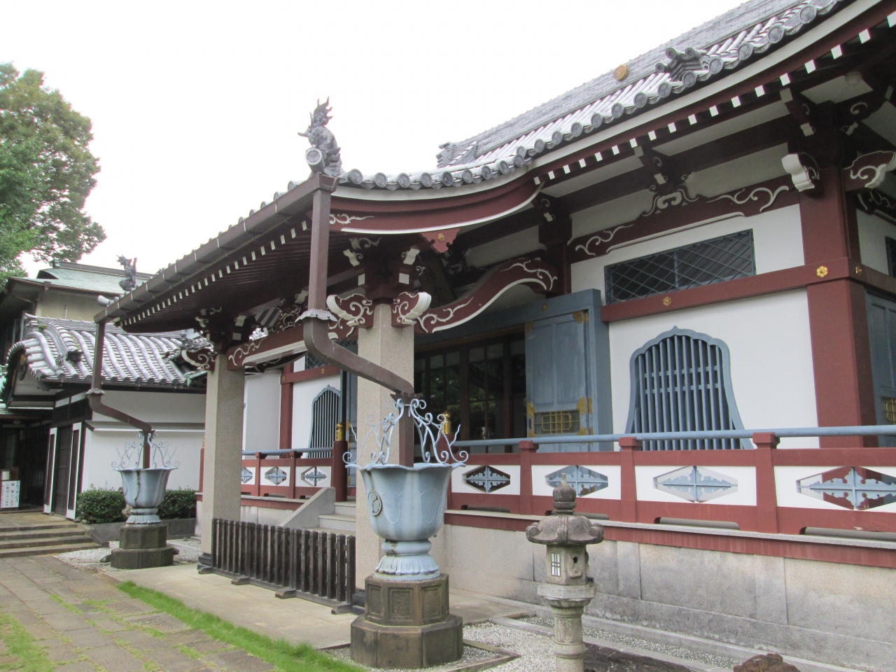 日蓮宗の一寺で、開山は里見日遥、創建は1664年です。徳川家康の側室お万の方(養珠院)(徳川頼宣生母)が紀州徳川家の屋敷に建てた草庵が始まりとされる。山門を入り、参道を進むと供養塔、布袋孫像、石段を登ると正面に本堂があります。本堂脇に銅板日遥墓誌の説明版はあるのですが、銅板の場所はわかりませんでした。青山七福神の一つで布袋孫像があります。ここの本堂もコンクリート造り、耐震耐火で、やむ負えないのでしょうが、古風なわたしからするとちょっとという感です。交差点付近にあるにも関わらず、高台に位置するせいか大変静かなお寺で、参拝者もおらずゆっくり拝観できました