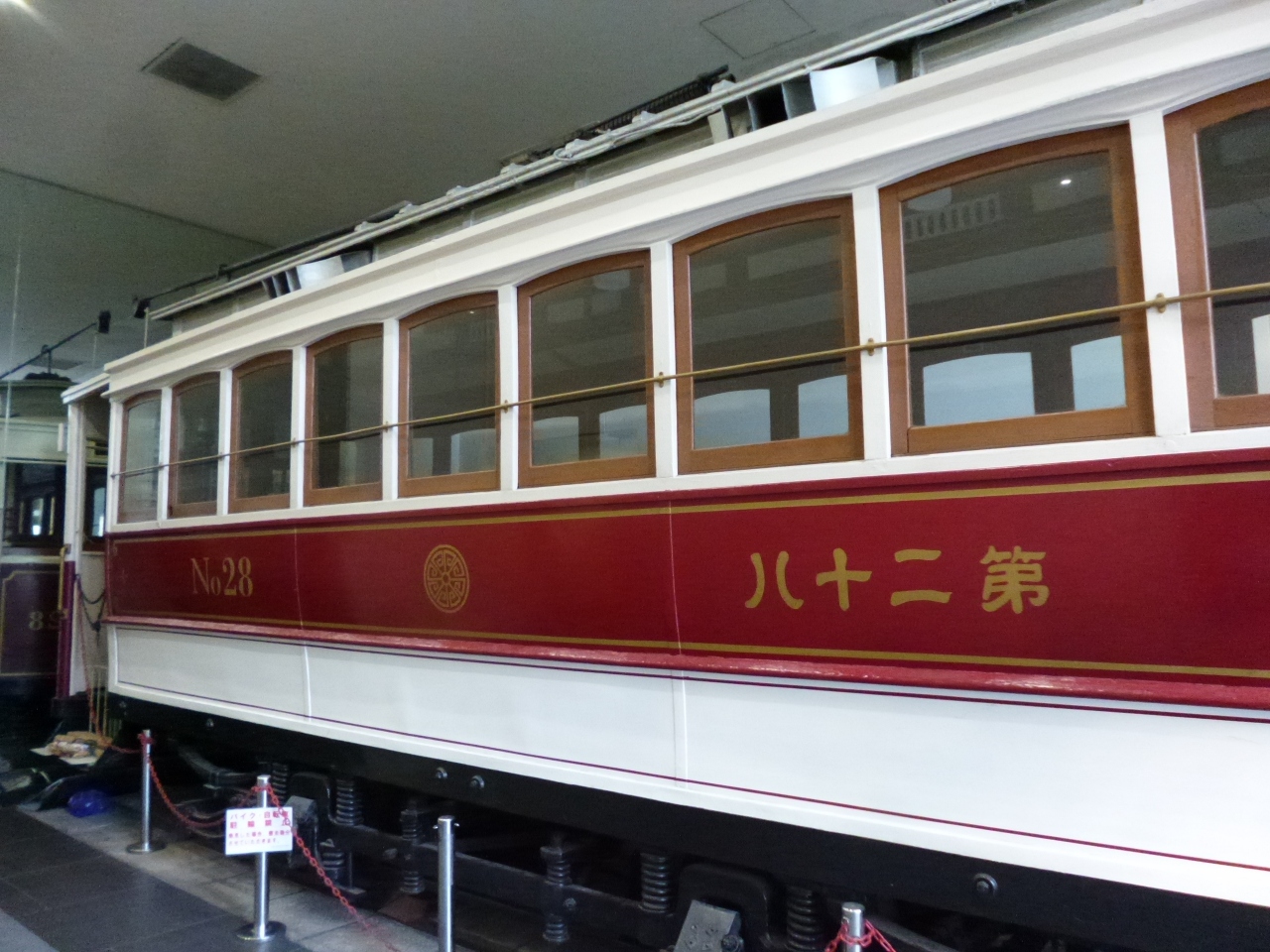 東本願寺近く、烏丸通りを北に歩いていくと、北坂ビルディングの1階に市電が展示されていて、通りからもよく見えますし、中に入ることもできました。京都は営業用電車が一番初めに走った場所で、京都電気鉄道が敷いた約20kmの線路をこの電車が走っていたそうです。大変きれいな状態で保存されていて、電車好きでなくても一見の価値はあります。