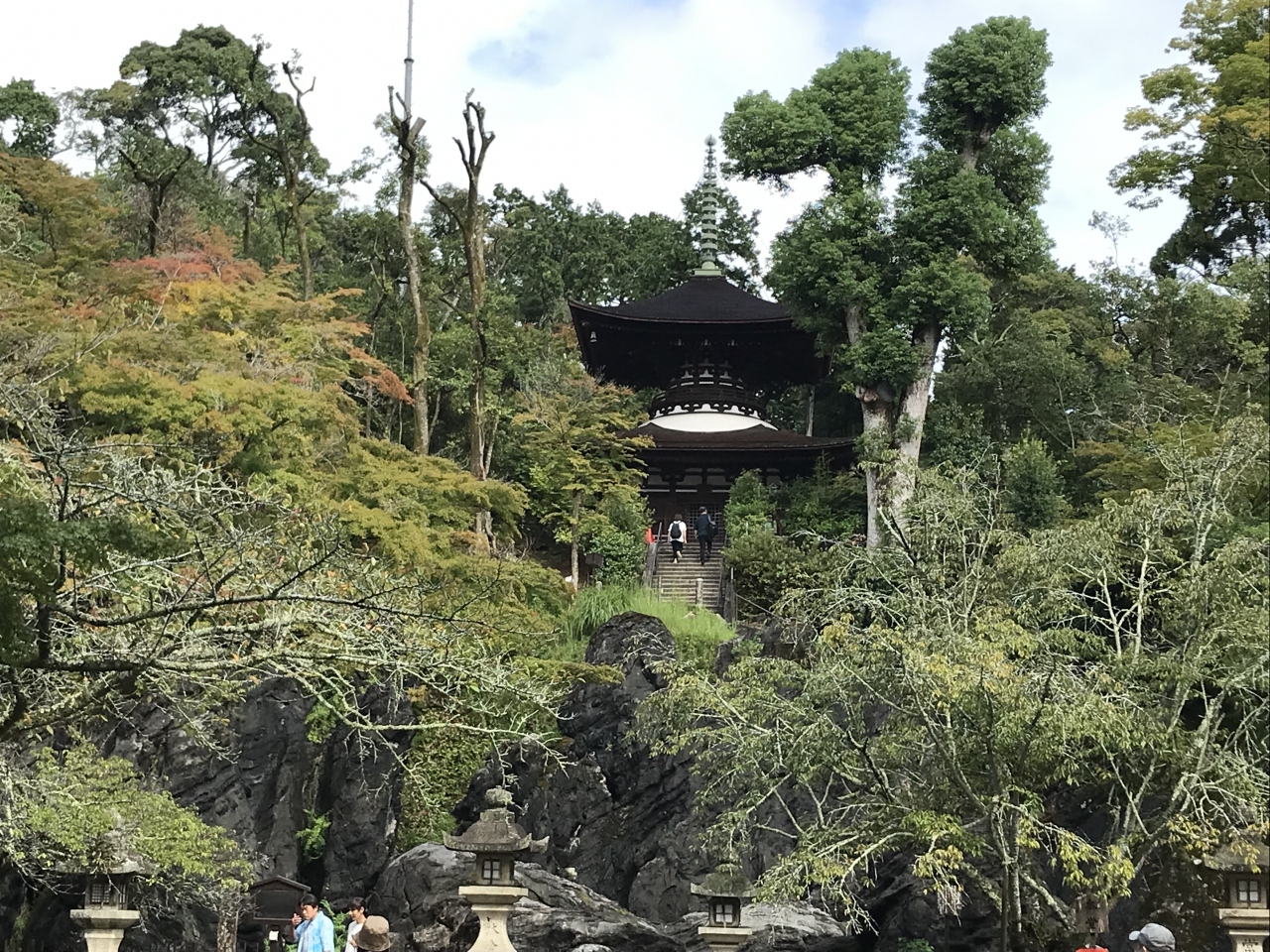 石山寺は、平安時代には貴族や皇族の間で石山詣で出かけ、紫式部が「源氏物語」の構想を練った場所としても知られています。本堂は、国宝で正堂と礼堂を繋いだ複合建築です。本堂は天然記念物の珪灰石という巨大な岩盤の上に建ち、これが寺名の由来ともなっています。春や秋は観光客も多いですが、私が訪れた時には人もまばらでゆっくりと見学することができました。