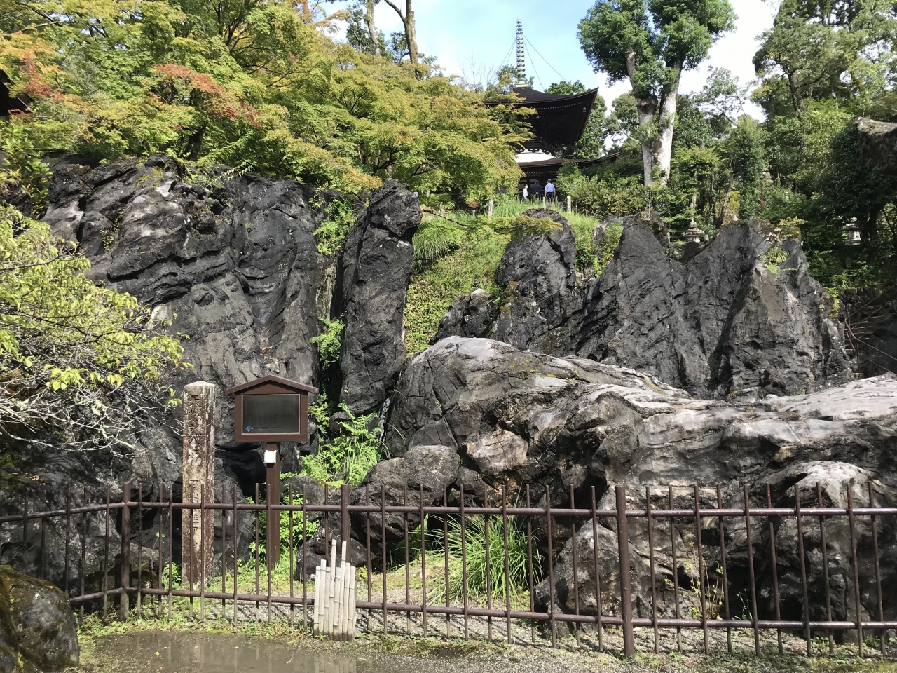 天然記念物の珪灰石という巨大な岩盤の上に建つ本堂