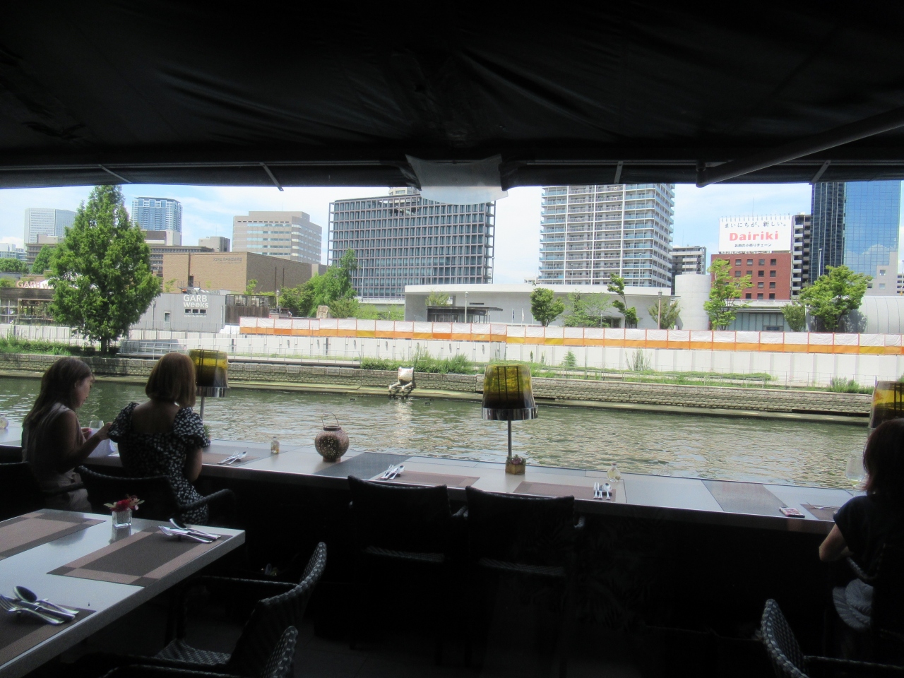 土佐堀川沿いにテラス席がありましたが、猛暑の時期にもかかわらず、テラス席の方も結構いました。