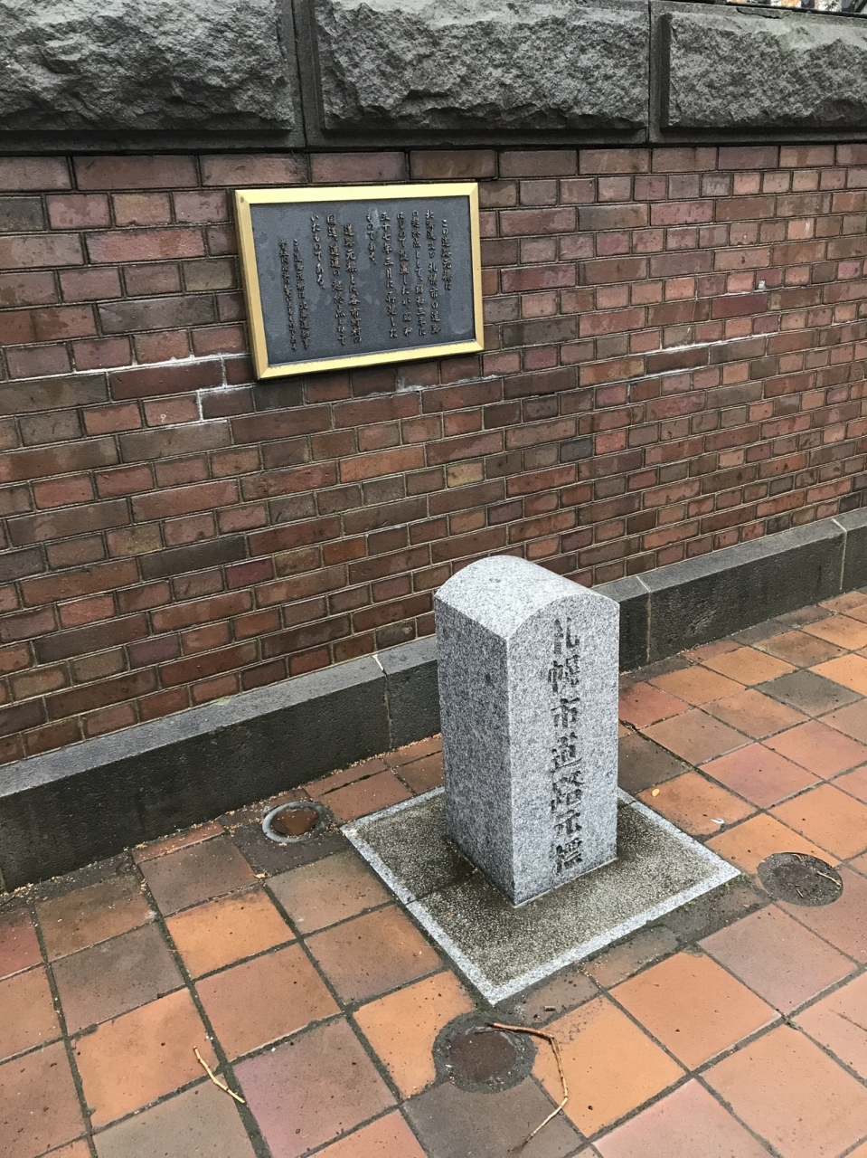 札幌市道路元標は、北海道札幌市中央区北3条西6、札幌道庁赤れんがのすぐそばにありました。