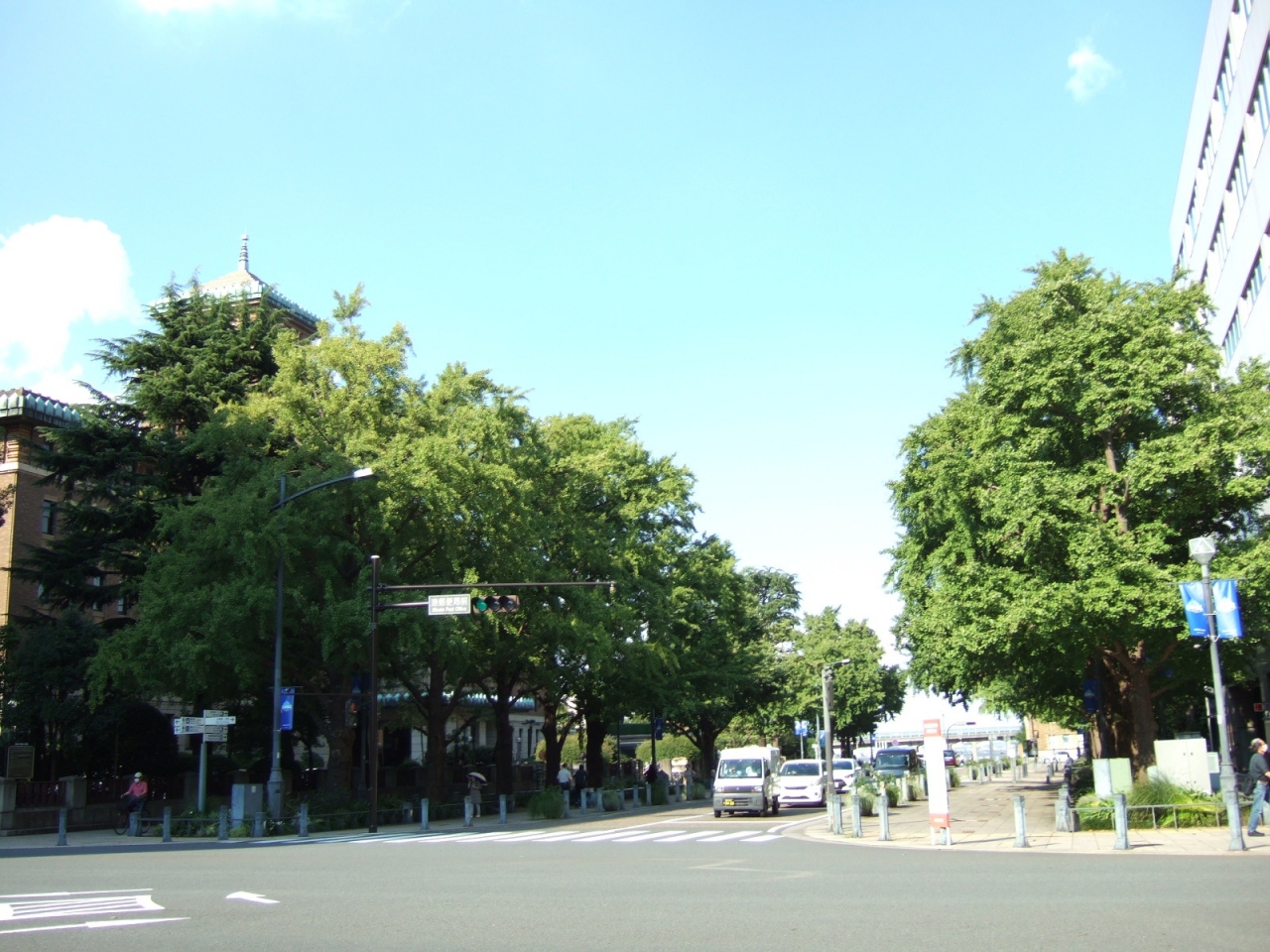 みなとみらい線の日本大通り駅を降りて地上に上がると、駅名になった日本大通りが伸びています。