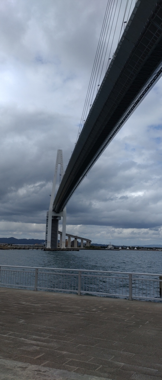 日本海側最大の斜張橋です。主橋梁部の長さは600mで、72本のケーブルで釣り上げられているとガイドさんからの説明がありました。2層構造で、上層が車道、下層が歩行者専用道路となっていて、地域の重要なインフラとなっているようでした。散策中、いろいろな所から眺めることができ、どこからも素敵な姿を眺めることができました。