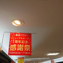 10月上旬の休日午後の時間帯に訪問しました。施設内は、多くの人出が見受けられました。ちょうど、食品フロアリニューアルしてから1周年だったようで、セールが行われており、食品フロアに特に賑わいがあったのが、印象的であるとともに、時の経つのは早いな、と感じました。