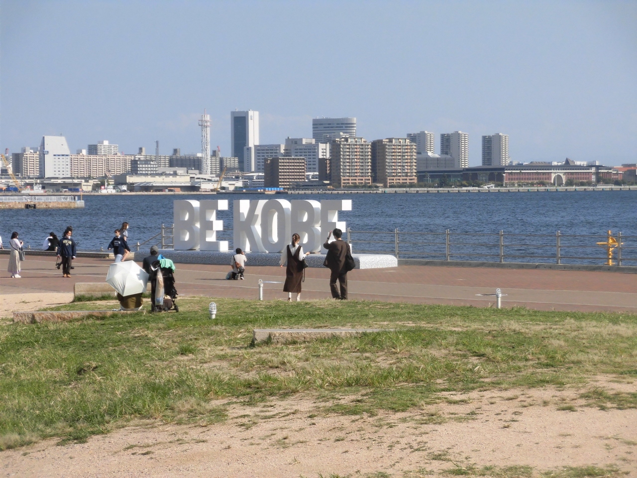 海外の景色は日本中によく似た場所が多いので、KOBEの文字が大きく映るこのモニュメントは人気があります。