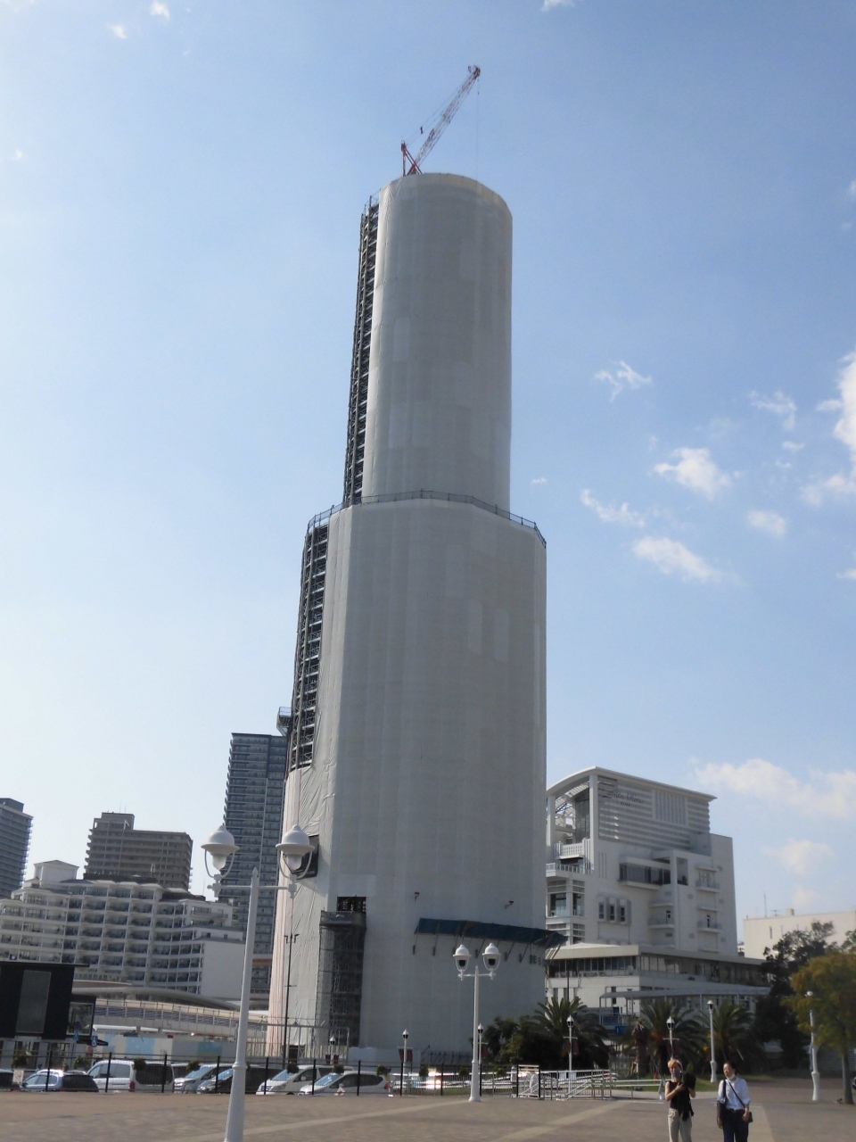 夜にはプロジェクションマッピングのいろいろな企画で楽しめるようですが、昼間は写真の通り工事の膜に覆われているだけです。