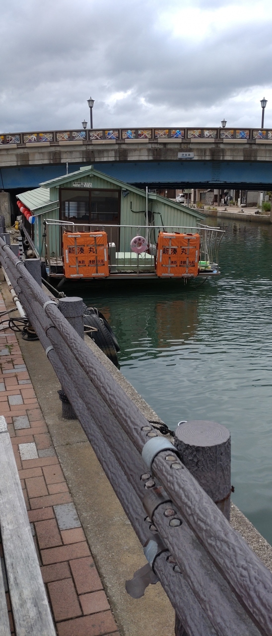 ”いろんな乗り物体験と新湊散策”のツアーので立ち寄った「川の道 新湊」のすぐそばにありました。橋のたもとには、屋台船がとまっています。いくつもの橋を 内川で見ましたが、その中で一番美しく心に残りました。ステンドグラスが魅力的です。