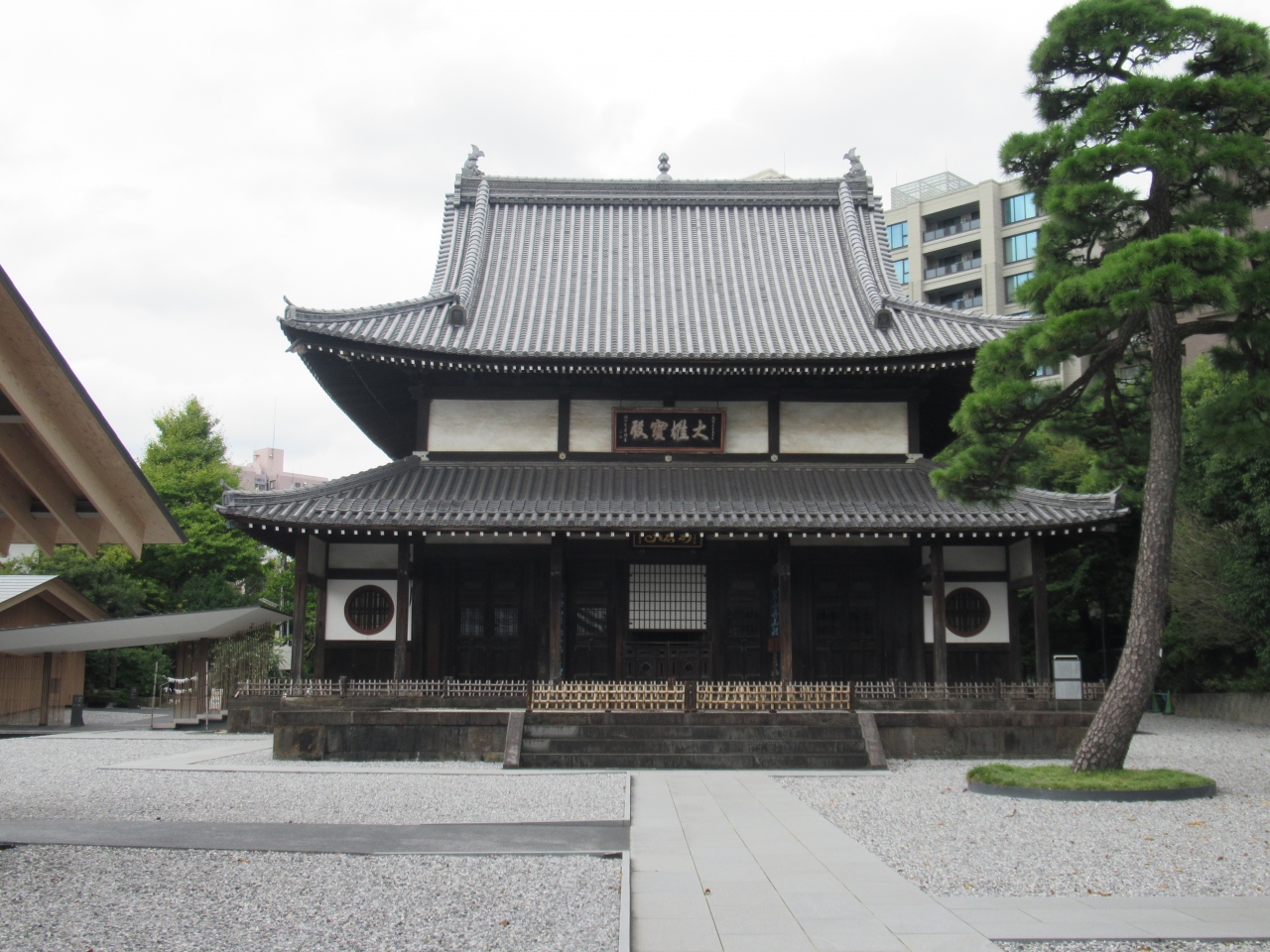 目黒通りを挟んで白金台駅2番出入口向かいに建つ黄檗宗の寺院です。大きな冠木門を通り抜けた先には、重要文化財に指定されている二重屋根や丸窓のある重厚で堂々とした仏殿が建っています。隈研吾氏によって設計された新しい庫裡は木材を使用した温かみが感じられ、庫裡の中央には広々とした水盤が広がっています。水盤の片隅には枝垂れ桜も植えられ、静かな境内で日本らしさを感じることもできます。白金台という高級感あふれる地に広々とした敷地と重厚な仏殿があることにびっくりです。