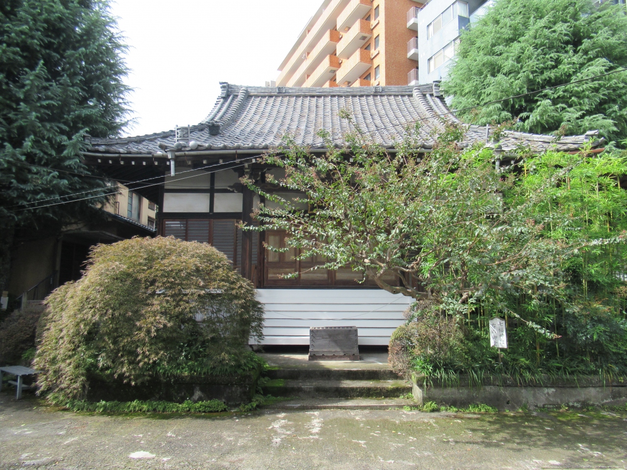 JR目黒駅から10分ほど、目黒通り沿いに建つ日蓮宗の寺院です。坂道の参道先に建つ木造の歴史を感じる本堂と、山手七福神の福禄寿と寿老人が祀られたお堂が特徴の寺です。墓地内の緑の木々も印象的でした。参拝に訪れている人はなく静かな境内でしたが、正月は七福神巡りで大いに賑わうことと思います。