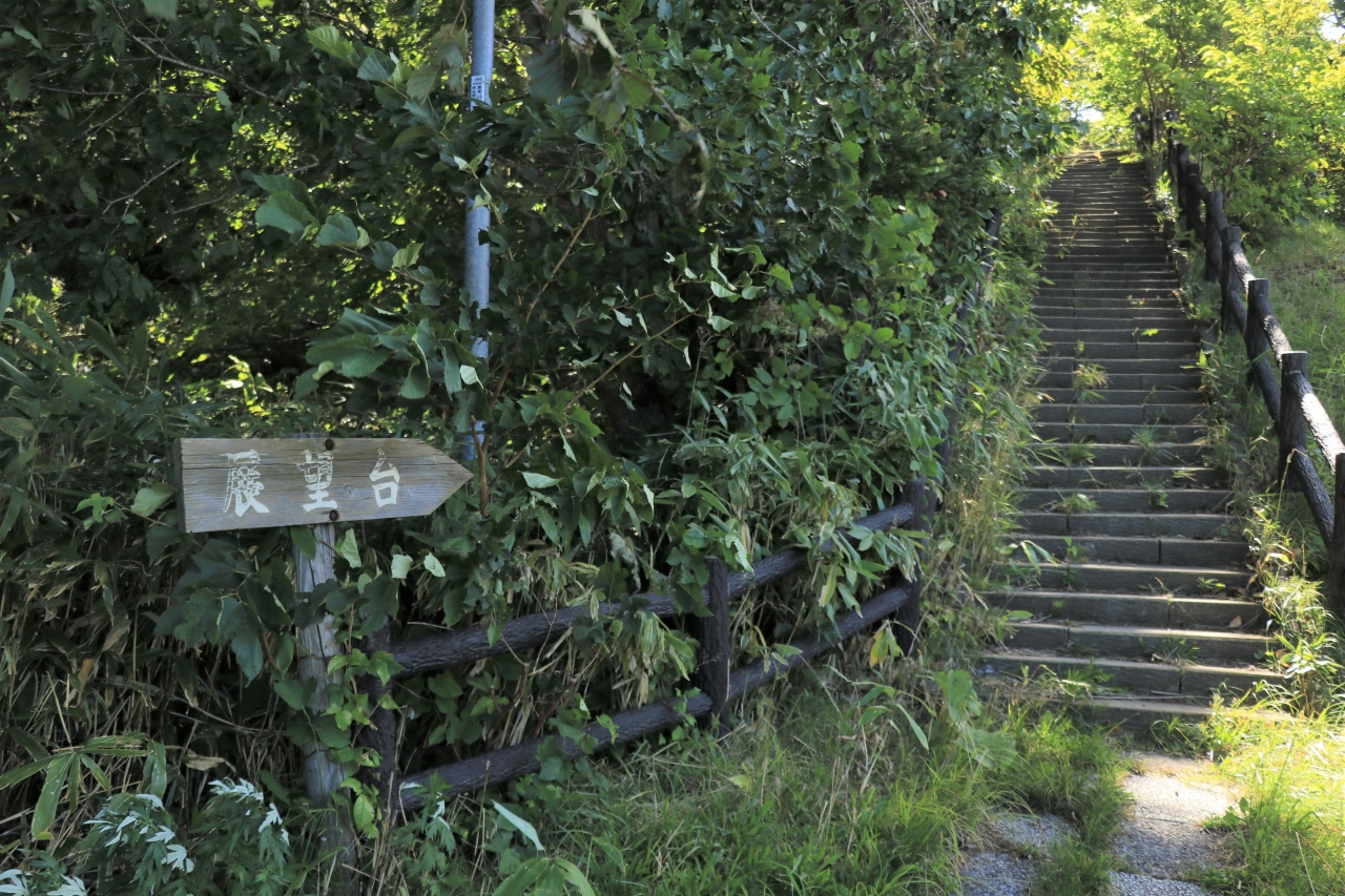 国道沿いにデカデカと看板が出ており目立つのは良いのですが、展望台への入口は除草もされずこのままだと自然に還ってしまいそうな雰囲気となっています。廃業したレストランに向かって右側に小さく「展望台→」と書かれた木製の看板がありそこが出入り口。少々ガタが来ている丸太でできた階段を2-3分で上まで登り切りましたが、そこにあった展望広場(らしき場所)は木々の成長で景色はほとんど見えない状態。他にも展望台はあるので観光客はそちらに向かうのがオススメです。